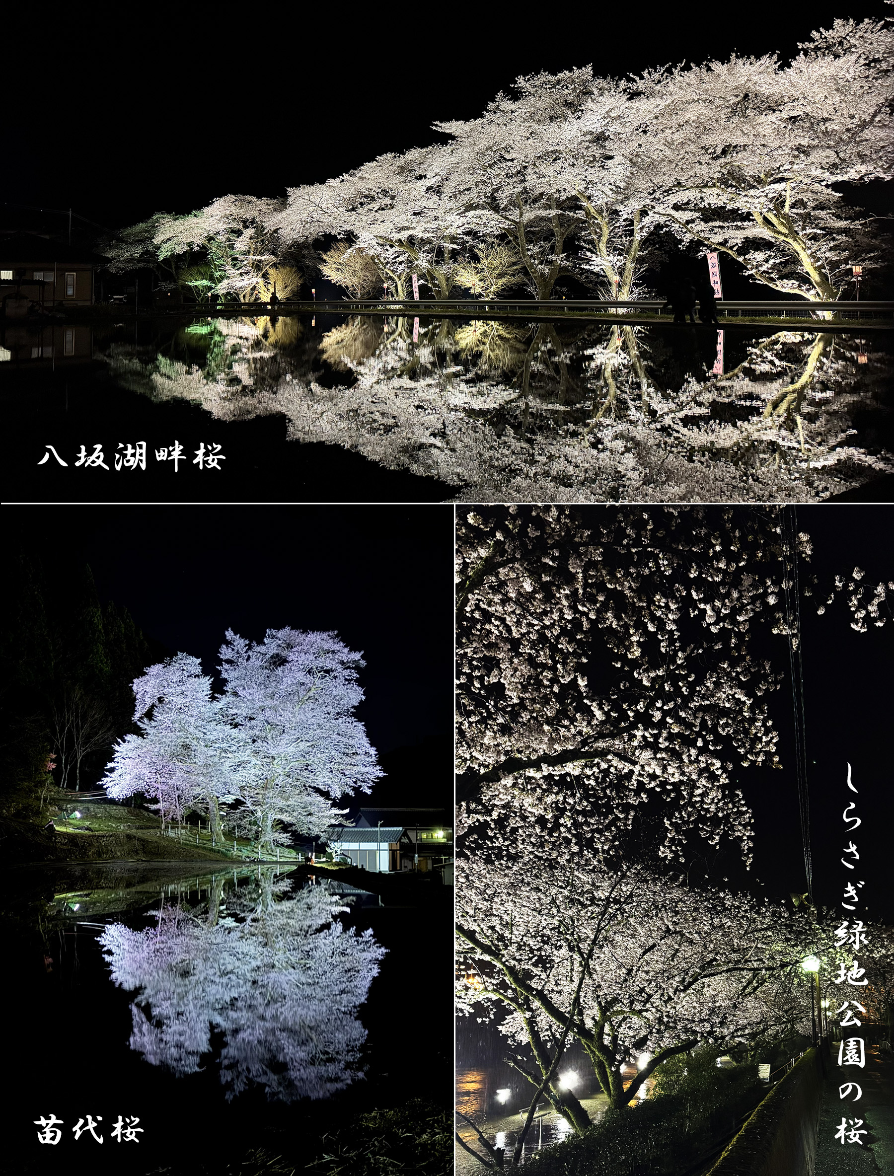 📌 苗代桜 ⇄ 八坂湖畔桜:車で約15分